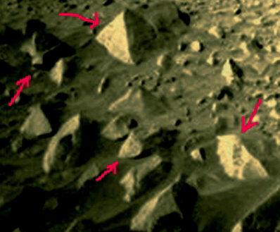 ピラミッド型の建造物?岩?があるのには驚かされます。完璧に知的生命体がいた痕跡ですね。