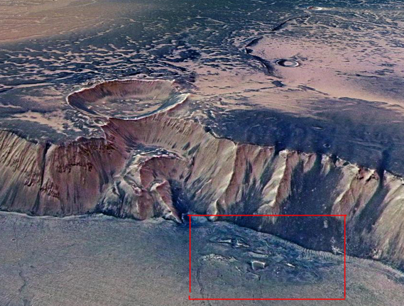 EchusChasma の写真は崖の下に 動物のような形が見えるようです。