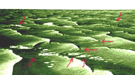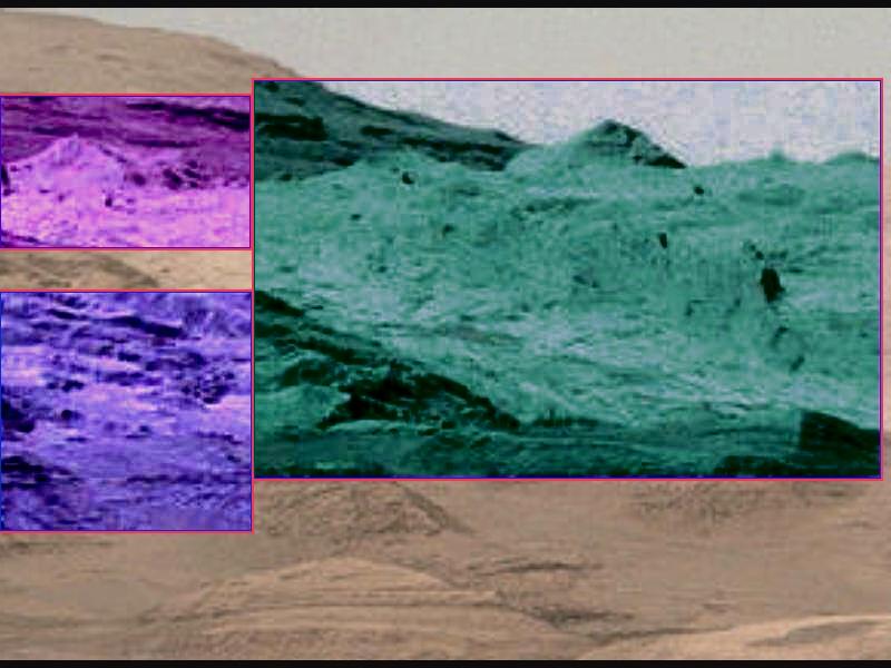 この縄目のような不思議な構造は 火星のあらゆるところに出てきます。山や砂漠など岩石だけではなくOdysseyなどの宇宙からの画像でも出てきたりします。