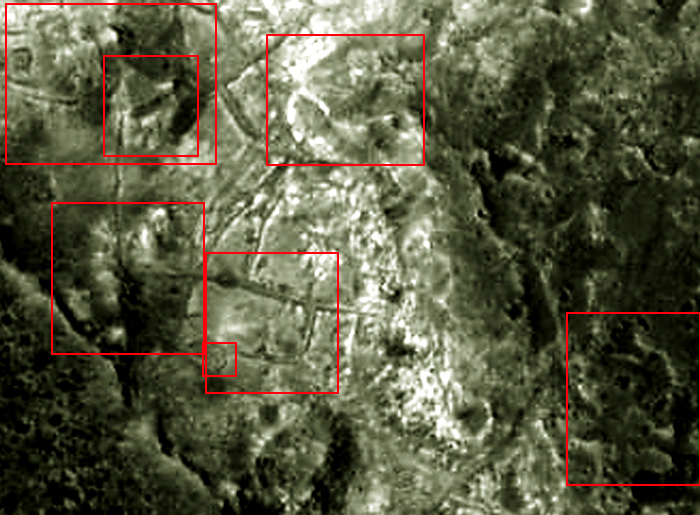 又クレーターの上には文字らしきものが。左上にも何か人工的なものがありそうです。
